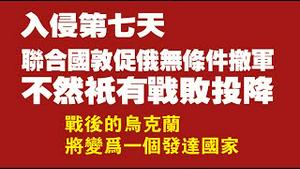 入侵第四天,俄罗斯提出谈判。欧盟向乌克兰提供战斗机,大量武器已到达乌克兰。以俄军的战力为参考,共军根本无法占领台湾。2022.02.27NO1147