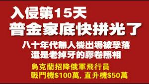 入侵第15天,普金家底快拼光了。八十年代无人机出场被击落,还是老掉牙的胶卷照相。乌克兰招降俄军飞行员,驾机投诚者:战斗机奖100万刀,直升机奖50万刀。2022.03.10NO.1164