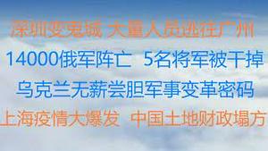 财经冷眼:最新!深圳大封锁,大量人员逃往广州?俄1.4万士兵死亡,5名将军被干掉,乌全线大反攻! 乌克兰卧薪尝胆军事变革密码!上海疫情爆发变武汉 ,中国土地财政塌方!(20220320第755期)